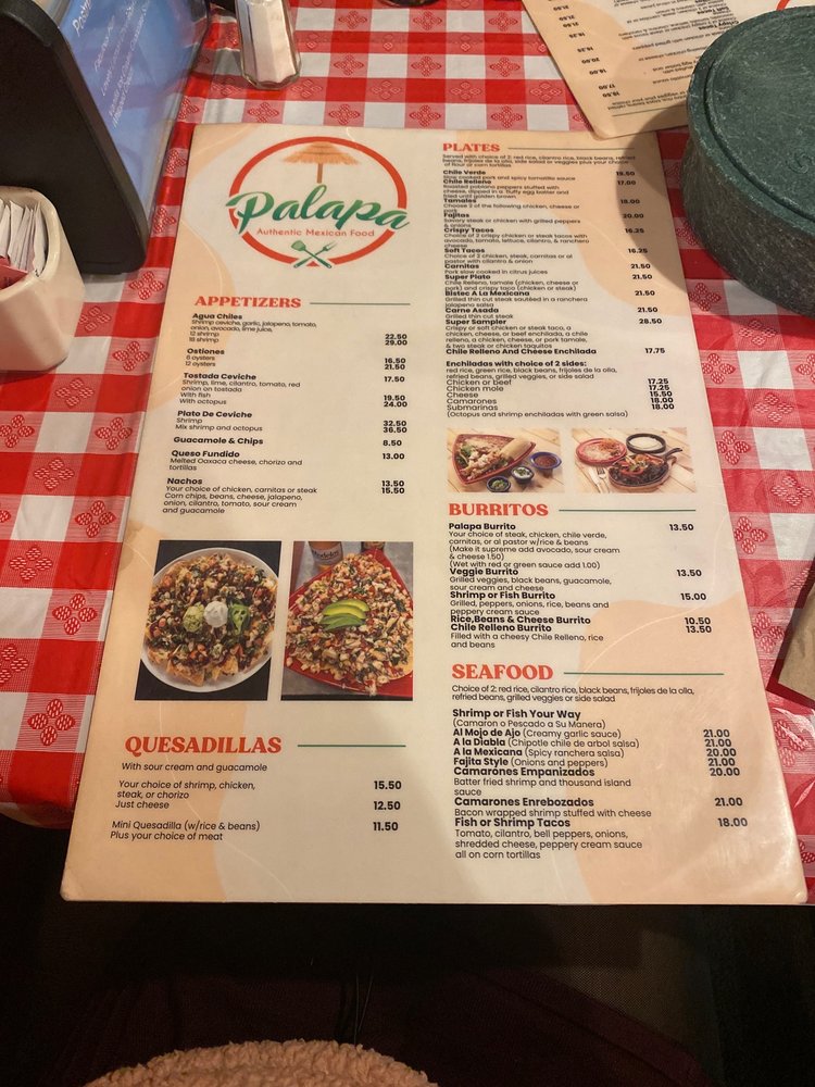 Palapa, a Mexican restaurant located at 4123 State St Santa Barbara, CA, offers a variety of amenities such as reservations, delivery, and takeout services. The menu includes many vegetarian options and features appetizers like nachos, queso fundido, and tostada ceviche. House specials like Chile Verde Plate and Fajitas Plate showcase traditional Mexican flavors. Customers have praised the fresh and authentic taste of dishes like ceviche and seafood cocktails. The ambiance is described as rustic and beach-like, with a cozy patio area. While some customers found the prices slightly high, the overall dining experience at Palapa is complemented by friendly service and ample portion sizes. Located near the Hyatt place, Palapa is a convenient choice for travelers and locals looking for delicious Mexican cuisine in a fun atmosphere with excellent service.